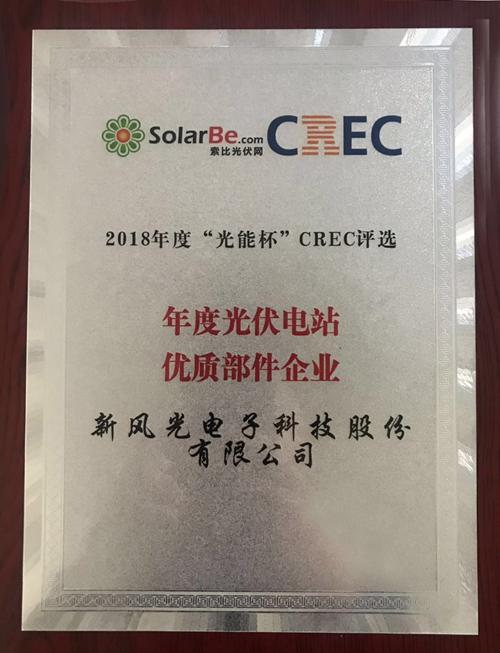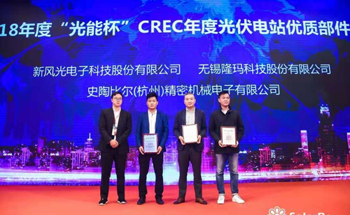 收獲源自耕耘—新風(fēng)光公司榮獲2018 年“光能杯”CREC “年度光伏電站優(yōu)質(zhì)部件企業(yè)”大獎