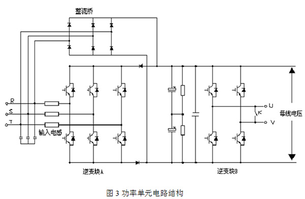 JD-BP37-280T型高壓提升變頻調(diào)速器采用進口IGBT為主控器件,采用先進的矢量控制調(diào)速技術,以DSP為控制核心,精心巧妙科學的程序邏輯,以彩色液晶觸摸屏為人機對話界面,科學人性化的界面語言,全中文的語言顯示,便于操作及查詢。風光牌高壓提升機變頻器,即可用于鼠籠式電機也可用于繞線式電機,即可用于新礦井配套安裝,也可用于老礦井改造。風光6kV高壓提升變頻器,采用若干個低壓逆變器功率單元串聯(lián)的方式實現(xiàn)直接高壓輸出,所用的6kV高壓提升變頻器,變壓器有18組付邊繞組,每相分為6個功率單元,三相共18個單元,采用36脈沖整流,輸入端的諧波成分低于國標規(guī)定。高壓提升變頻器系統(tǒng)結(jié)構(gòu)如圖2所示。功率單元電路如圖3所示。