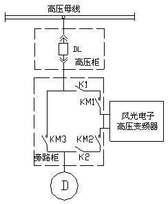 電機工頻運行時,若需對變頻器進行故障處理或維護,切記在KM1、KM2分閘狀態(tài)下,將隔離刀閘K1和K2斷開。