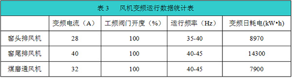 改造后,水泥生產(chǎn)線變頻耗電情況統(tǒng)計數(shù)據(jù)如表3所示。