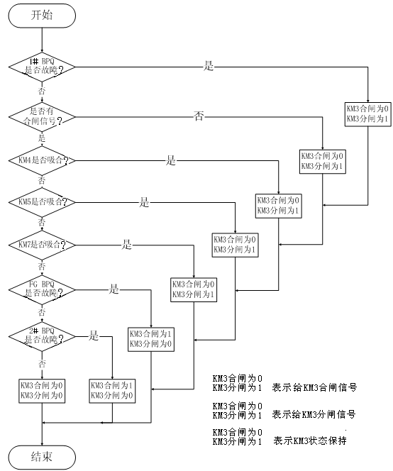 開機(jī)刀閘條件2滿足的條件為:K1閉合,K2閉合,KM5或KM6有且只有一個吸合,有高壓就緒。
