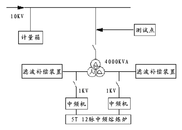 湖南某機(jī)械鑄造廠的主要負(fù)載為1臺(tái)12脈5噸中頻熔煉爐。電氣部分高壓采用交流10kV供電,變壓器容量為ZSSP-4MVA:1臺(tái),10kV/1000V,額定電流 231A/1155A,變壓器短路阻抗7.52%。