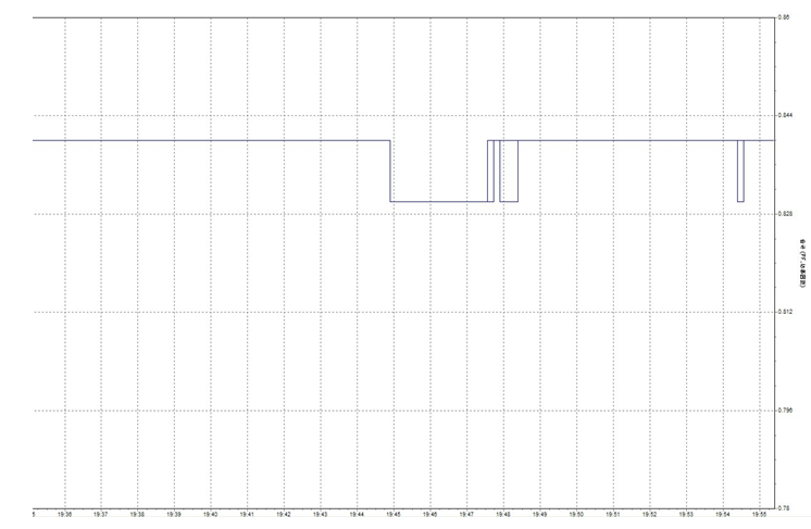圖4為記錄的玉礦線SVG投運前功率因數(shù),有圖4可以看出未投運SVG,功率因數(shù)為0.83左右,對電網(wǎng)的穩(wěn)定性不利。